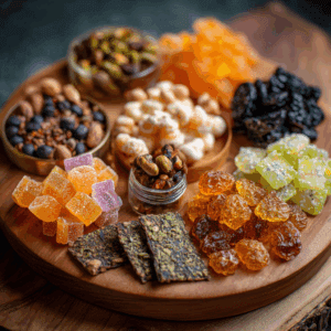 - Zone A: A big non-infused candy & snack board (house rules: all ages).